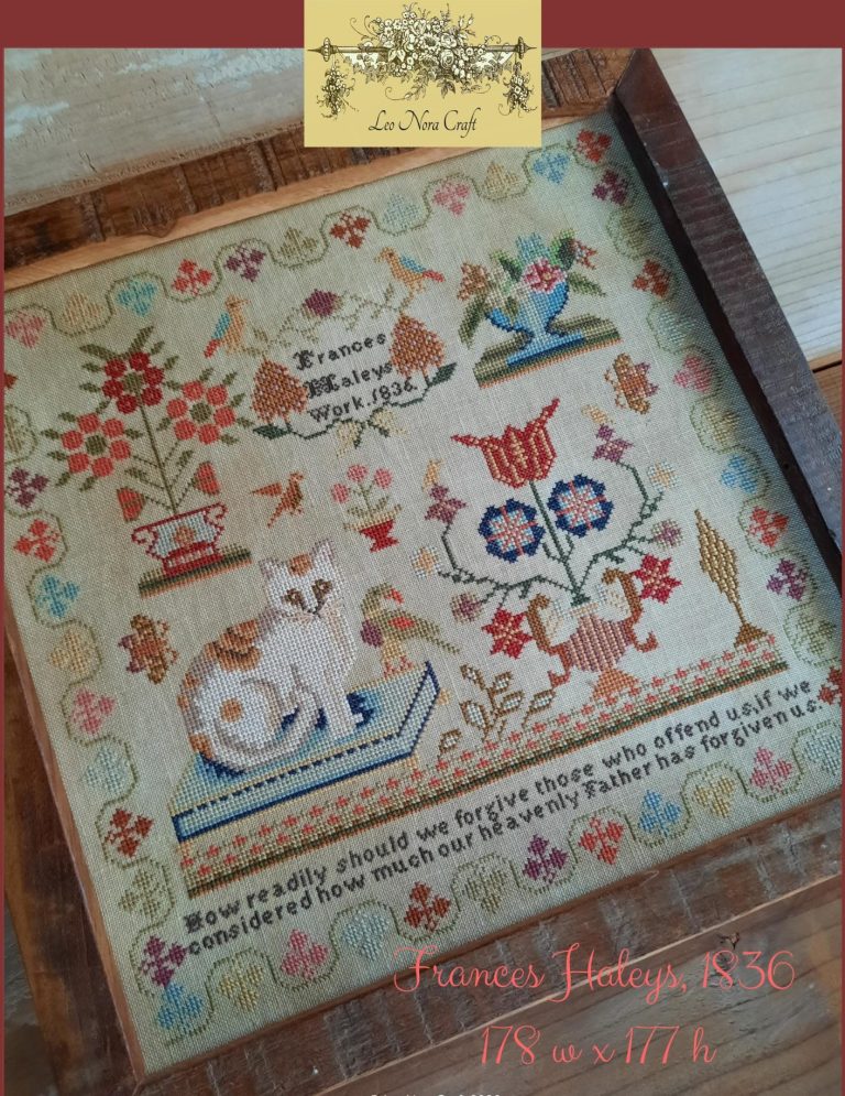 Es ist endlich so weit! Das zauberhafte Mustertuch von Frances Haleys ist nun in meinen Shops als PDF erhältlich. Ich bin begeistert, euch diese tolle Vorlage anbieten zu können und hoffe, dass ihr viel Freude beim Nachsticken dieses kleinen, aber feinen Mustertuches haben werdet.